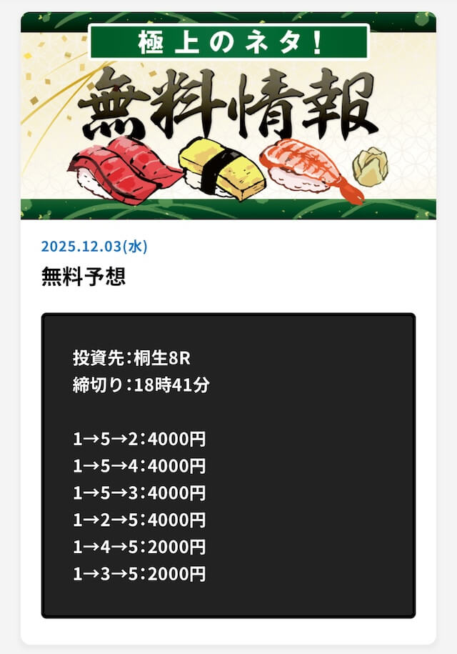 | 12月03日桐生08R | 1-2-5 | 20,000円 | 36,400円 | 182% | |