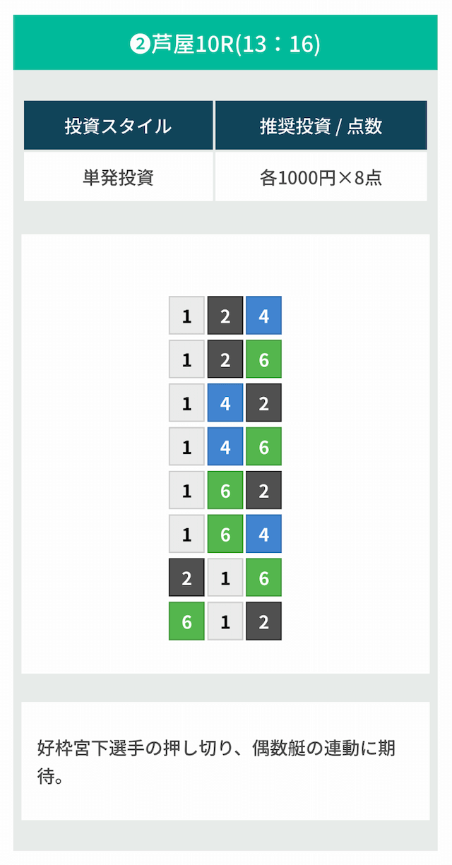 買い目の背景が明確なので納得感があり、毎日の情報に安心して乗れるのが魅力。