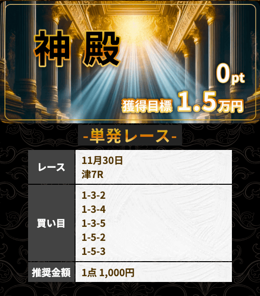 | 11月15日三国11R | 1-3-2 | 5,000円 | 12,300円 | 246% | |