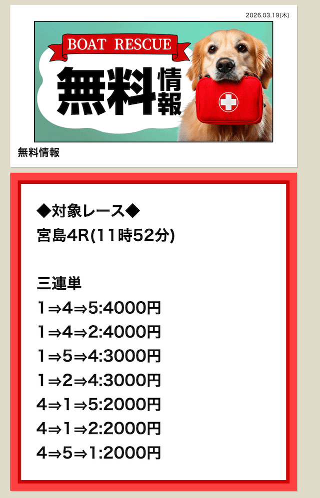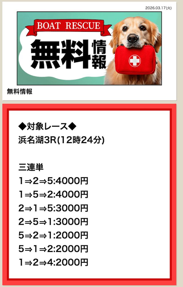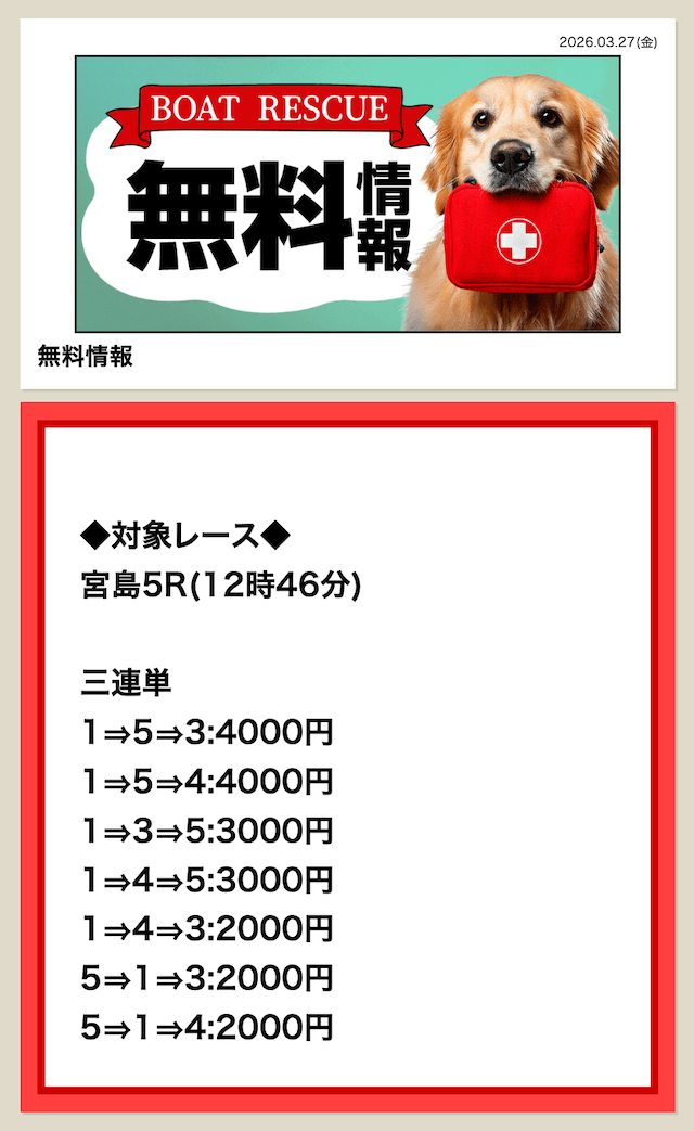 無料予想は毎日公開していますので、是非チェックしてみてください。