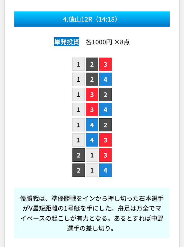 | 08月24日徳山11R | 1-2-3 | 8,000円 | 8,300円 | 104% | |