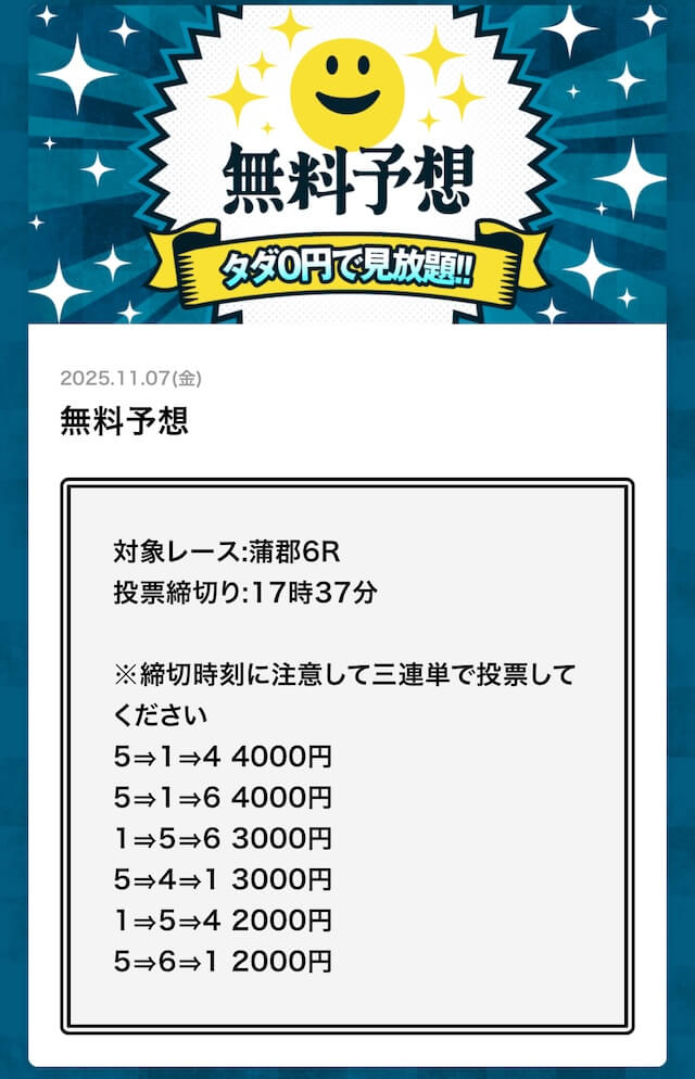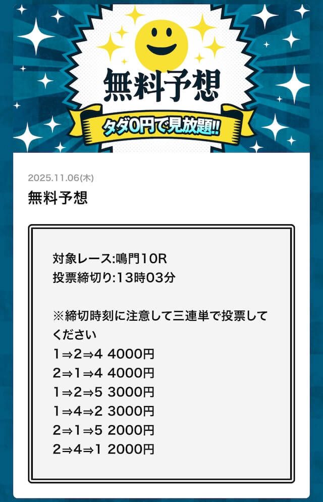 有料予想の利用有無に関わらず、ひとまず登録特典を受け取っておきましょう。
