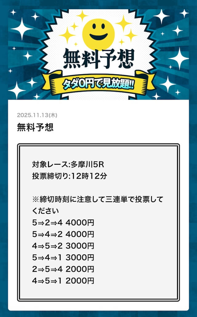 【11/13 多摩川5R 】 無料予想 +54,300円 |