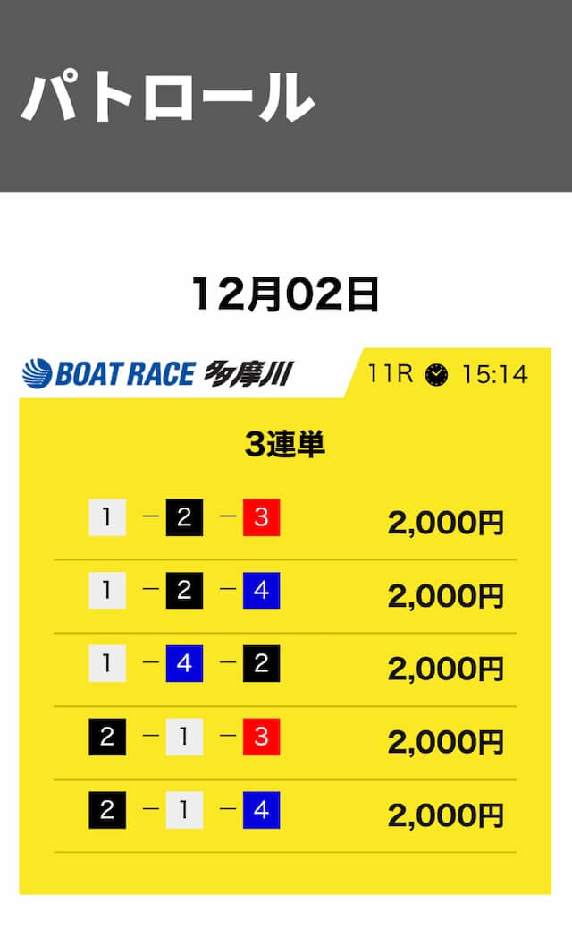 | 08月11日多摩川11R | 1-2-3 | 18,000円 | 24,000円 | 133% | |