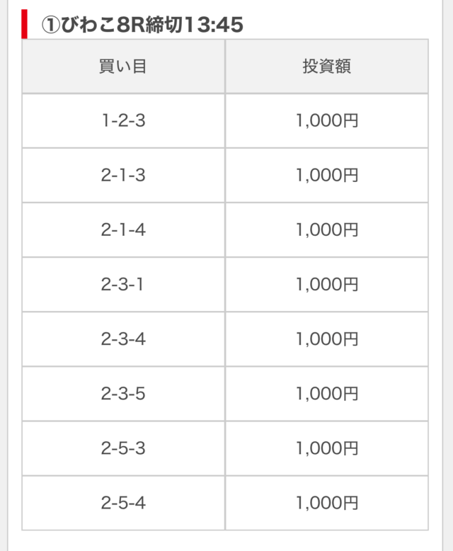| 10月26日江戸川08R | 1-3-5 | 8,000円 | 0円 | 0% | |