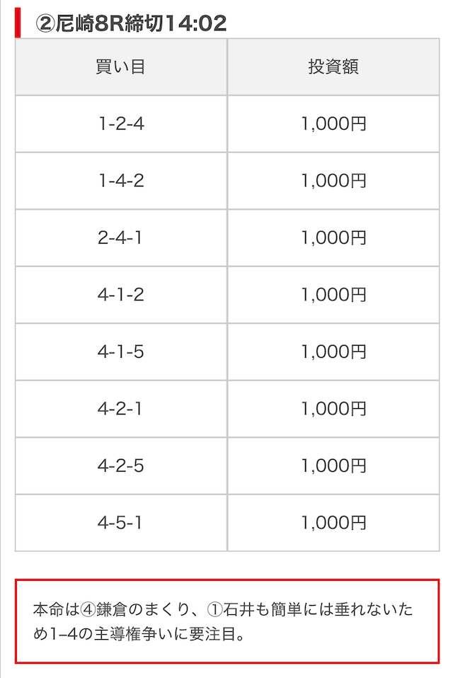| 11月14日芦屋10R | 1-4-2 | 8,000円 | 12,600円 | 158% | |