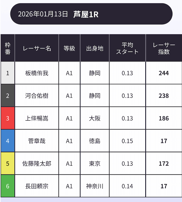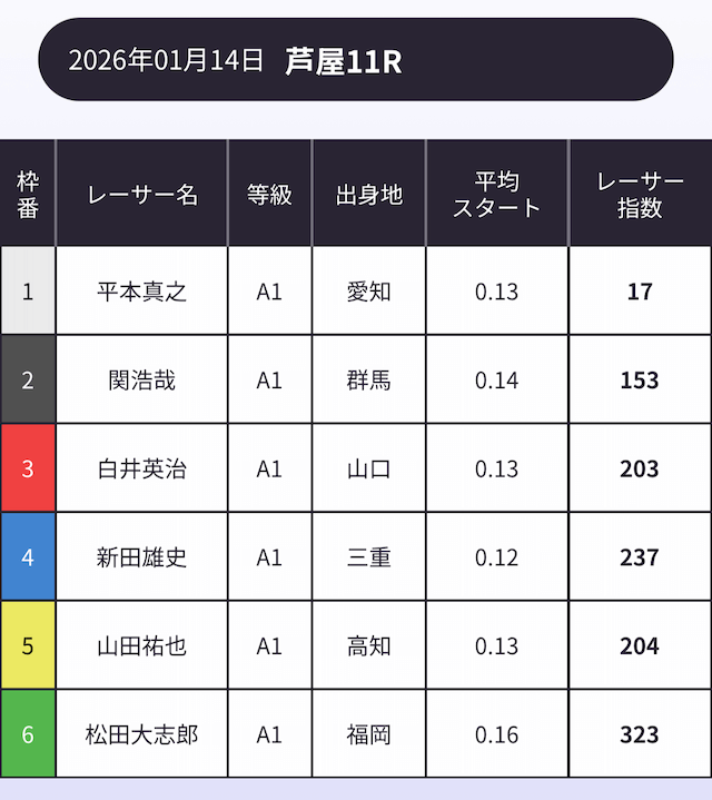 ※各予想指数の高かった選手3艇をボックス買い(1点1,000円)
