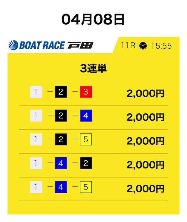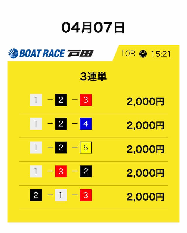 | 10月25日徳山11R | 1-2-5 | 5,000円 | 14,600円 | 292% | |