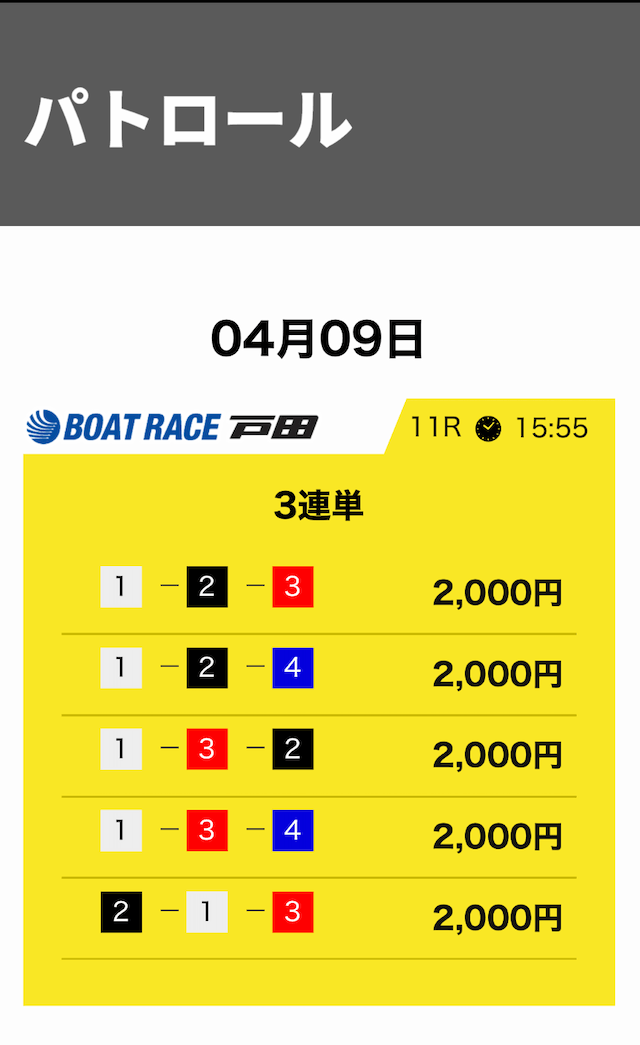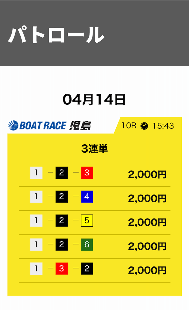 | 02月04日江戸川07R | 1-2-3 | 5,000円 | 5,700円 | 114% | |