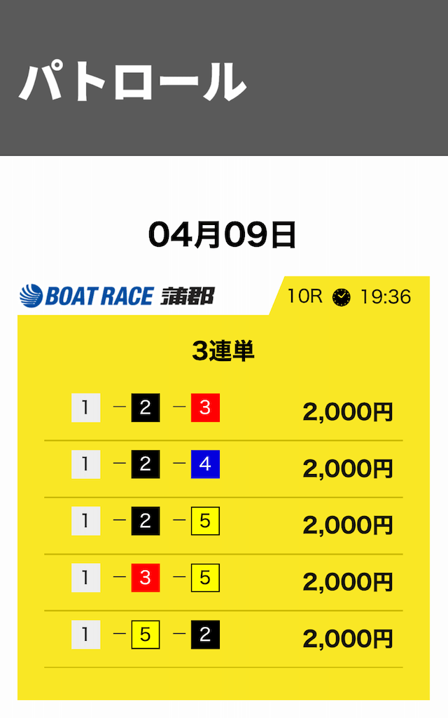 | 08月25日平和島04R | 1-2-5 | 5,000円 | 27,200円 | 544% | |
