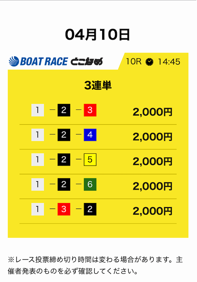 | 10月02日鳴門10R | 1-2-4 | 5,000円 | 11,000円 | 220% | |