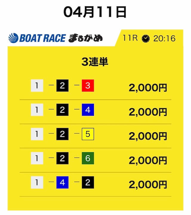 | 11月11日鳴門11R | 1-2-4 | 5,000円 | 8,900円 | 178% | |
