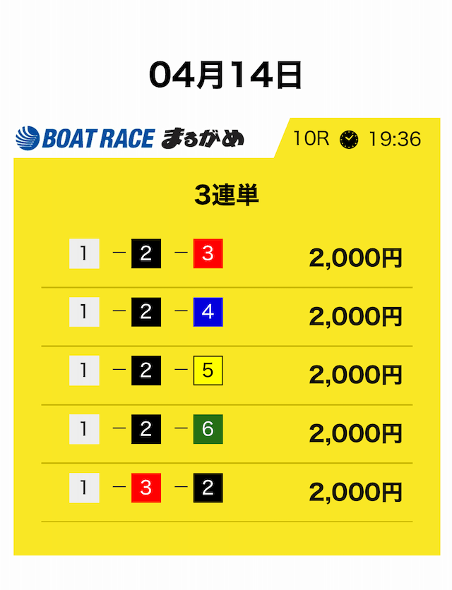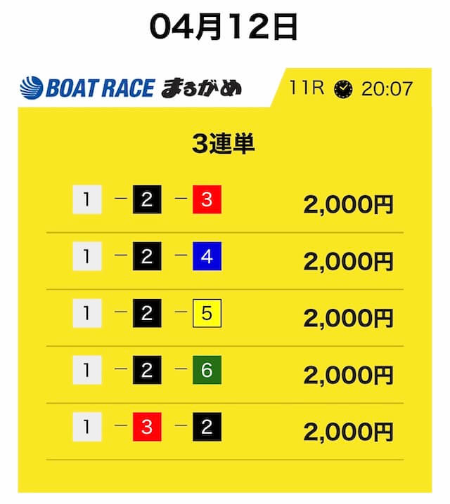 | 10月13日徳山12R | 1-2-6 | 5,000円 | 35,600円 | 712% | |