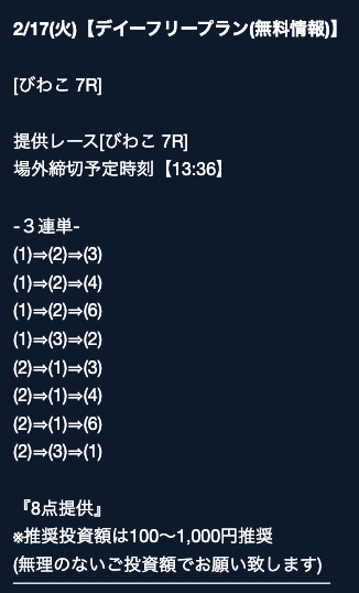 そういった情報網から得られる「注目するべきレース」の情報をLINE公式アカウント登録者限定で配信する用意があります。