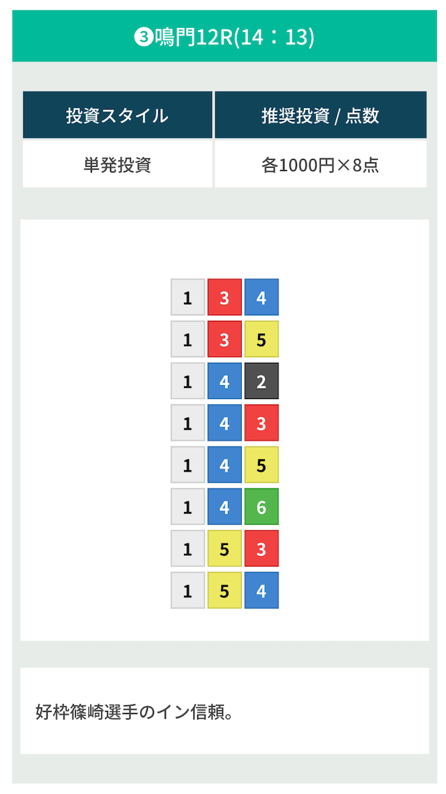 | 10月08日鳴門12R | 1-4-6 | 8,000円 | 26,100円 | 326% | |