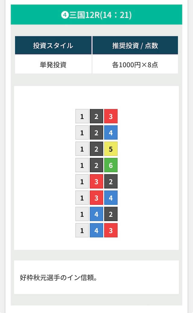 | 11月12日三国12R | 1-4-6 | 8,000円 | 25,200円 | 315% | |