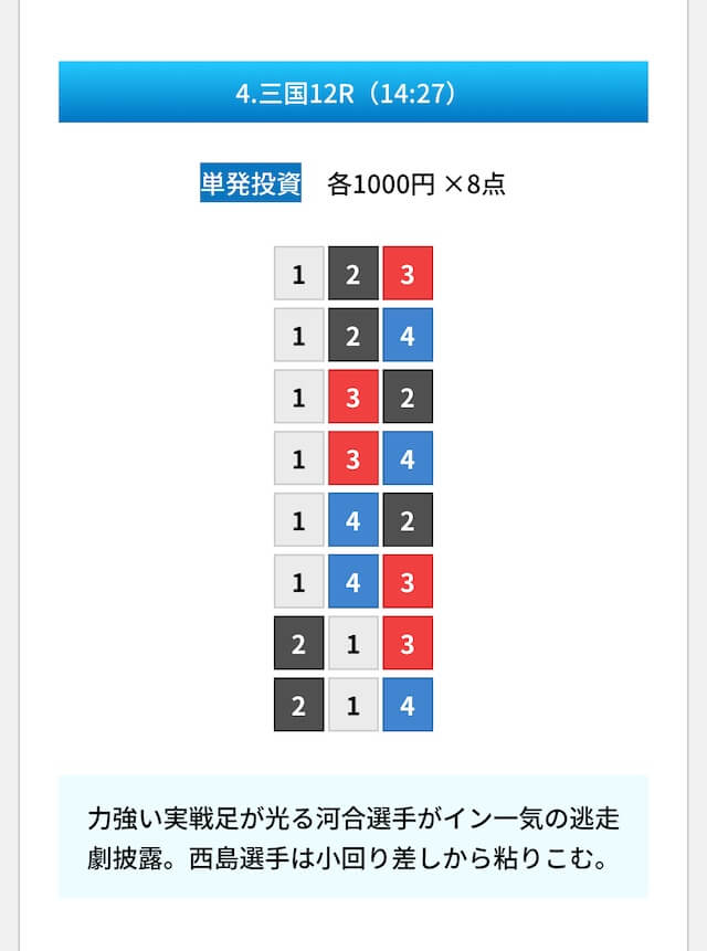 | 10月21日三国12R | 2-1-4 | 8,000円 | 47,900円 | 599% | |