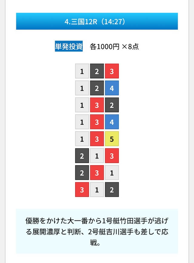 | 08月15日三国12R | 1-4-5 | 8,000円 | 19,300円 | 241% | |