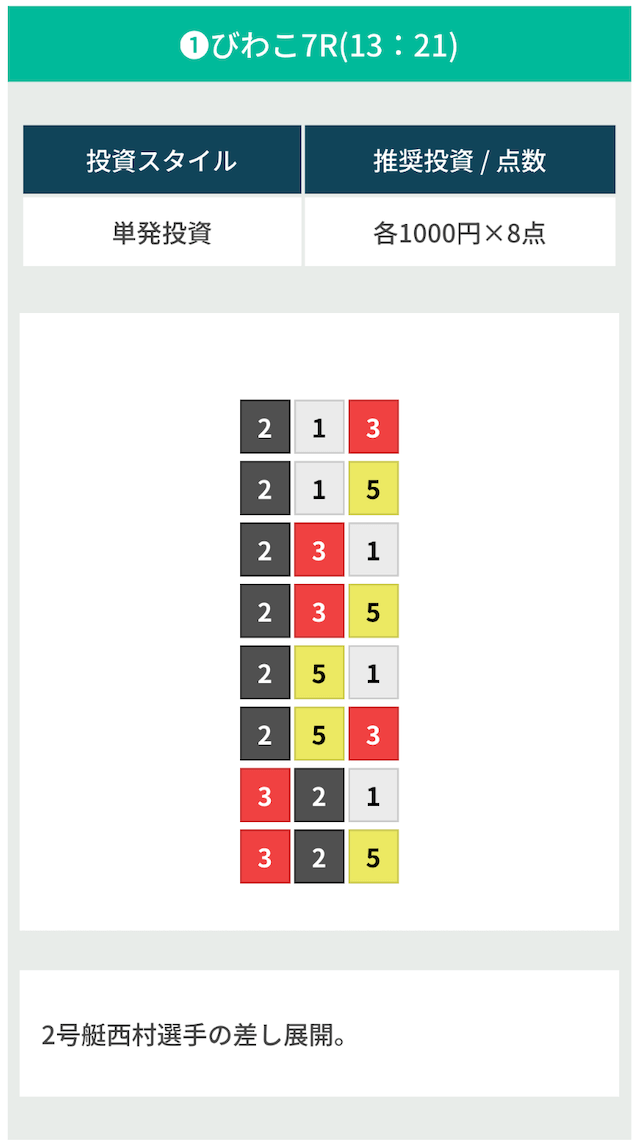 | 08月16日びわこ07R | 1-3-2 | 8,000円 | 12,300円 | 154% | |
