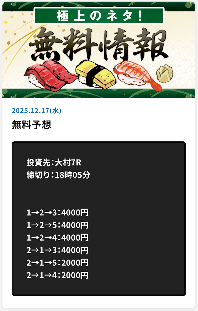 最新無料予想結果