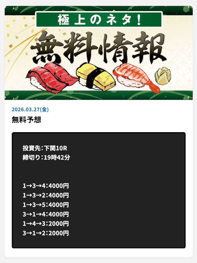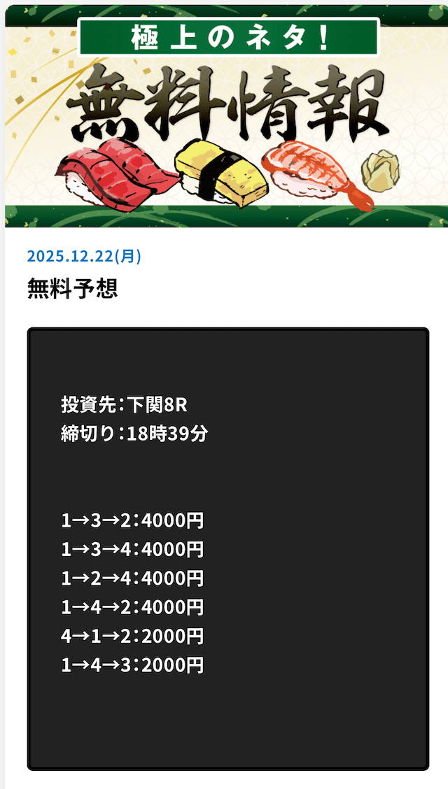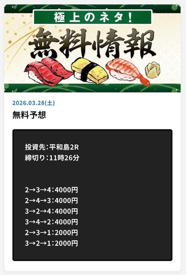 彼らは長年の経験と蓄積されたデータによって高品質の予想を完全無料で提供しています。