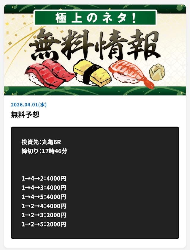 【4/2 浜名湖4R 】 無料予想 +20,900円 |