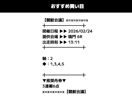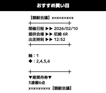 的中実績 【2/24 鳴門6R 】