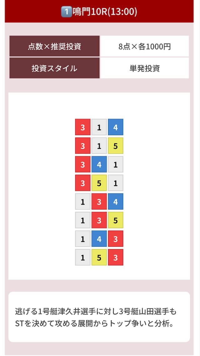 | 10月10日鳴門10R | 3-1-4 | 8,000円 | 25,900円 | 324% | |
