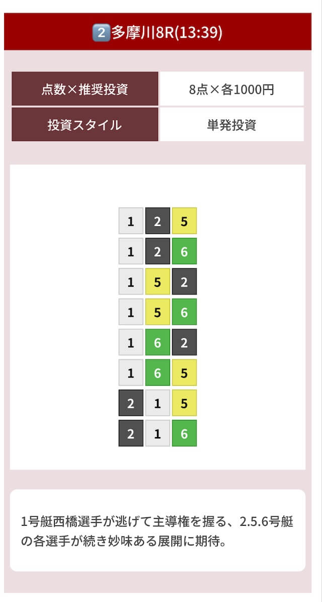 | 09月23日多摩川07R | 4-1-6 | 8,000円 | 30,800円 | 385% | |
