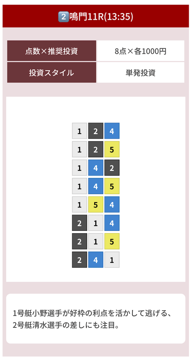 | 07月22日鳴門10R | 1-2-4 | 8,000円 | 10,300円 | 129% | |