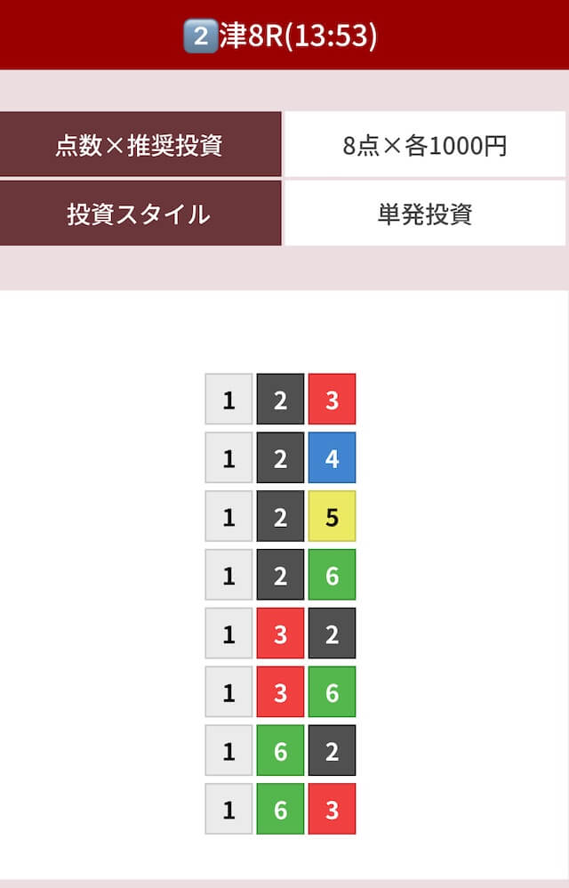 | 09月16日三国12R | 1-2-3 | 8,000円 | 8,500円 | 106% | |