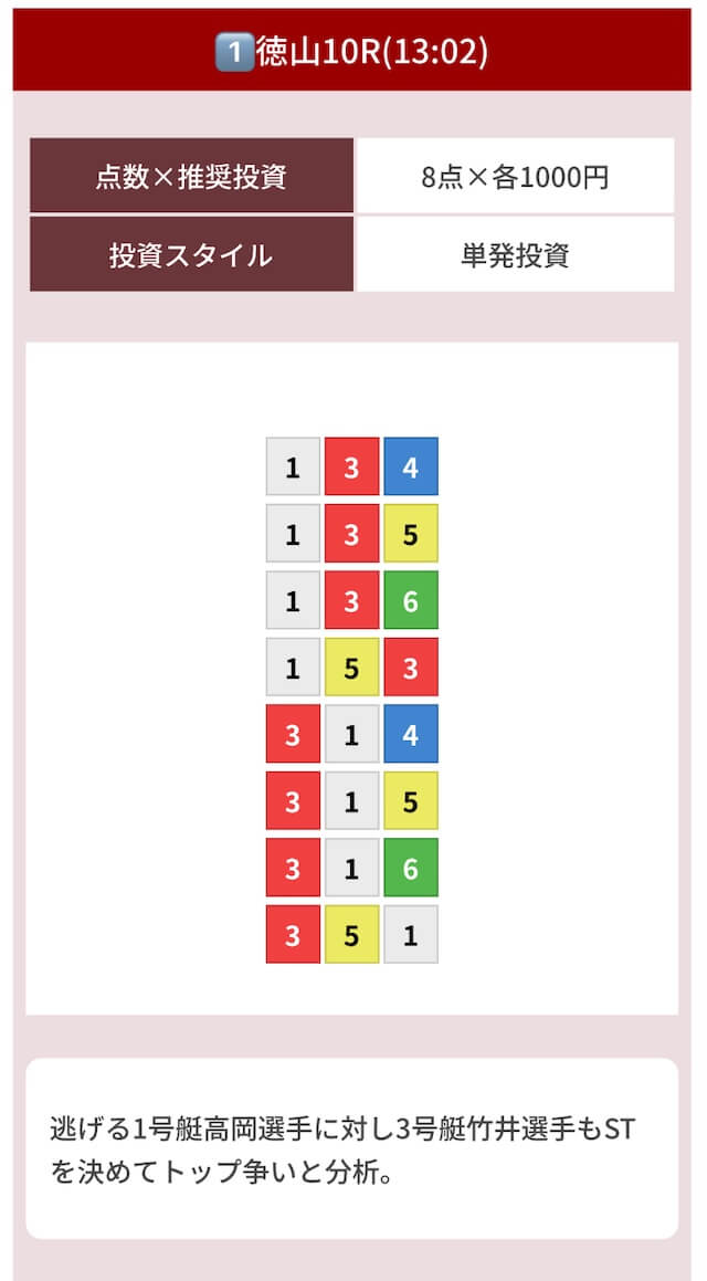 | 08月15日徳山10R | 3-1-2 | 8,000円 | 37,200円 | 465% | |