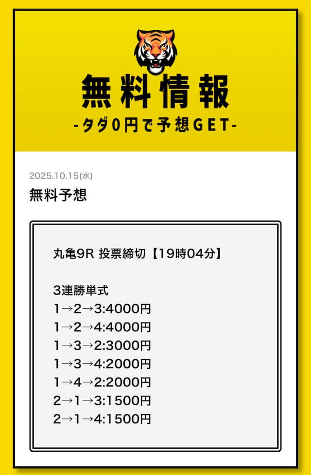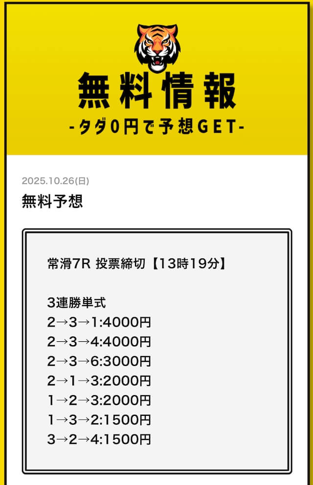 いずれも登録から無料予想の利用まで完全無料で利用することができるため、丸ノリするのも参考にするのも良し。