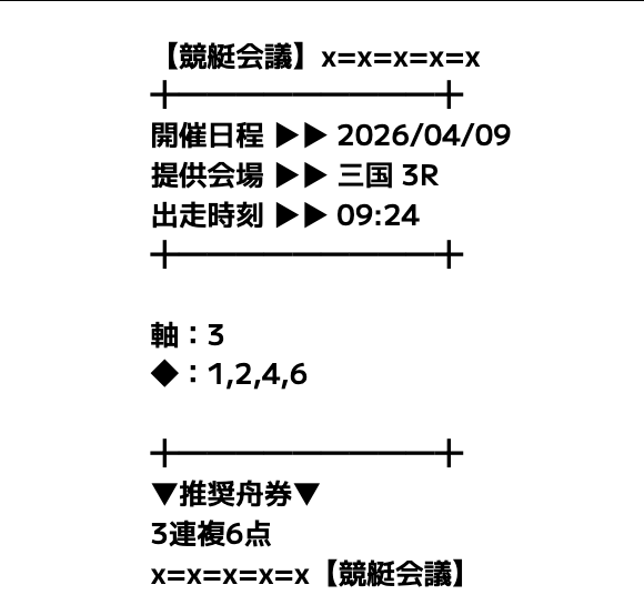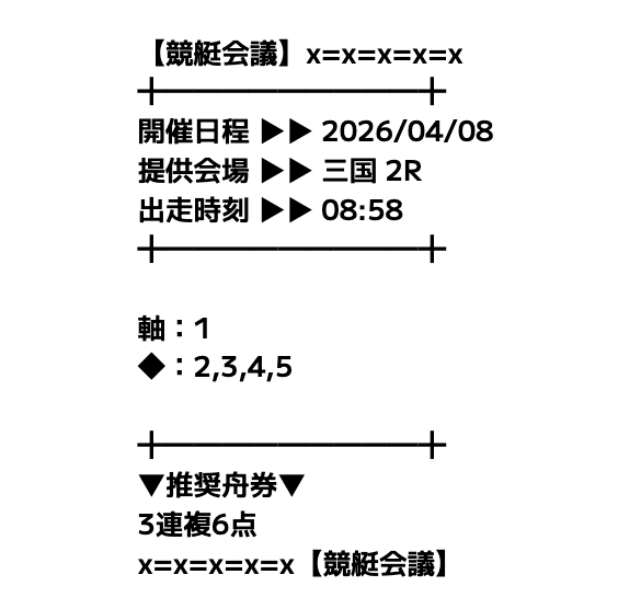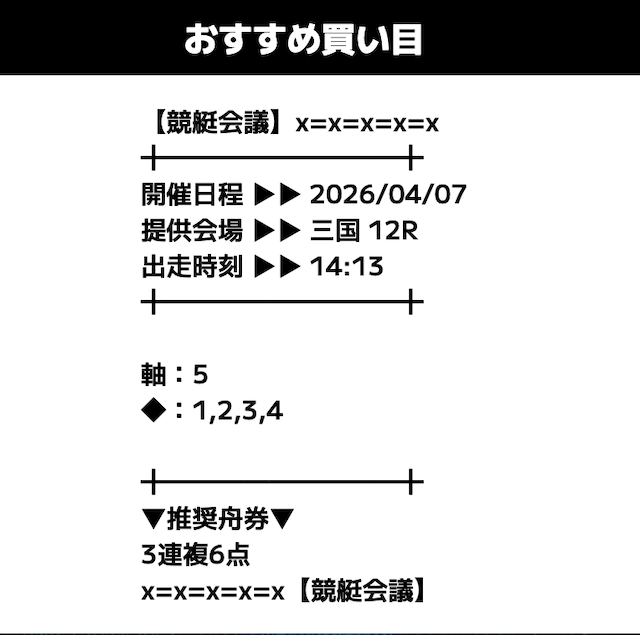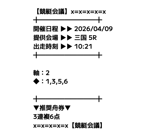 競艇会議の無料予想は3連複中心なので、大外しがほとんどなく安心して参加できます。週の半分はコツコツ当たるので、余計なストレスが減りました。派手さはないけど、安定して続けられるサイトです。