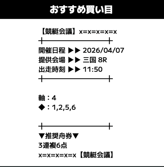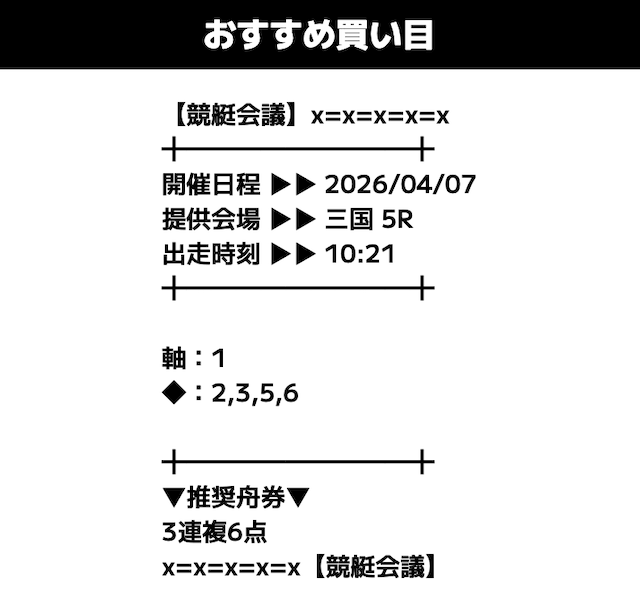 多くの競艇予想サイトが1日2〜4レース分公開のなか、これはかなりお得。