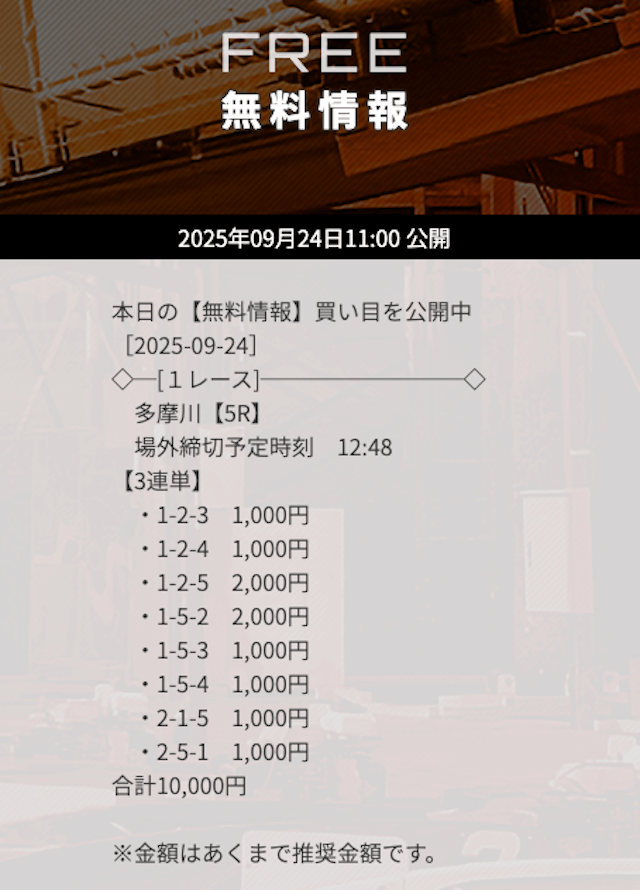 09月24日多摩川05R | 1-2-5 | 10,000円 | 12,800円 | 128% | |