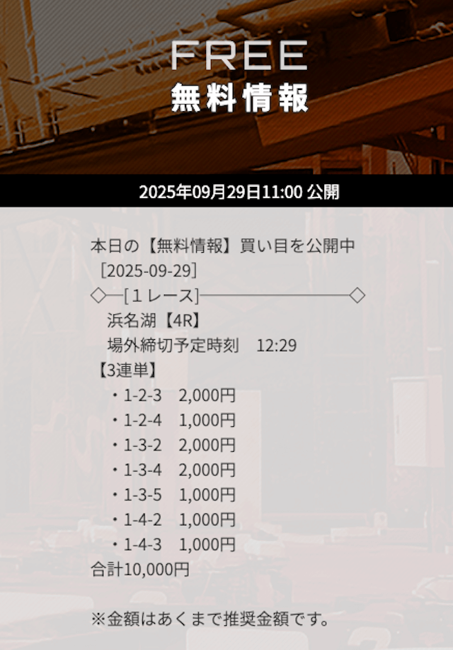 09月29日浜名湖04R | 1-3-5 | 10,000円 | 11,500円 | 115% | |