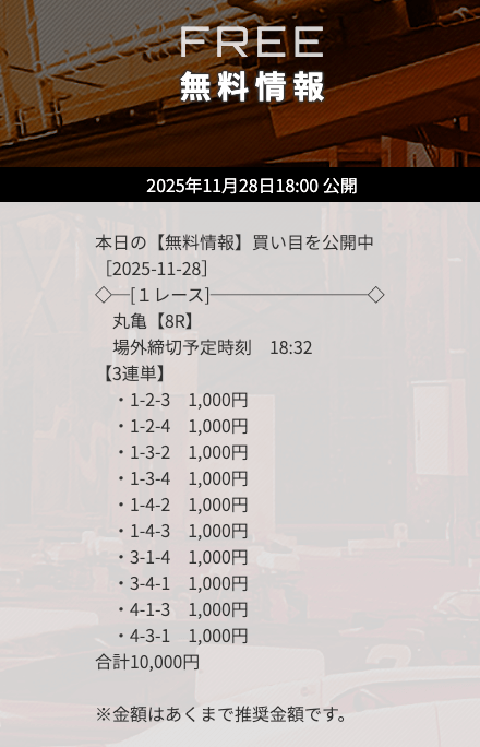 特にSG戦は的中率・回収率ともにかなり高く、予想が公開された場合は必ず参加すべきと言っても過言ではありません。