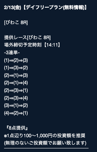 そういった情報網から得られる「注目するべきレース」の情報をLINE公式アカウント登録者限定で配信する用意があります。