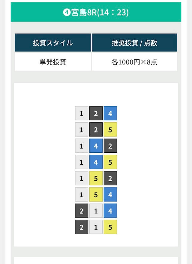 09月19日宮島08R | 1-2-5 | 8,000円 | 9,300円 | 116% | |