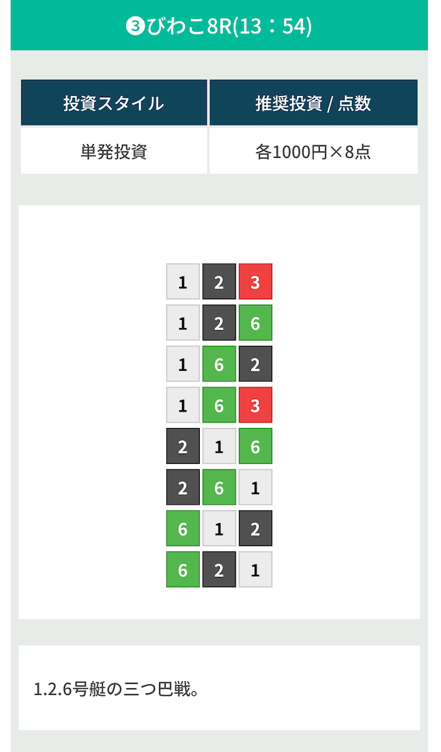 08月16日びわこ07R | 1-3-2 | 8,000円 | 12,300円 | 154% | |