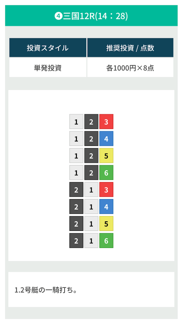 08月27日児島06R | 3-1-2 | 8,000円 | 22,200円 | 278% | |