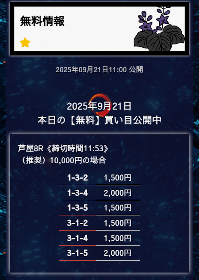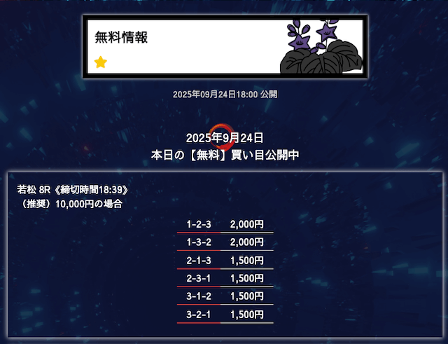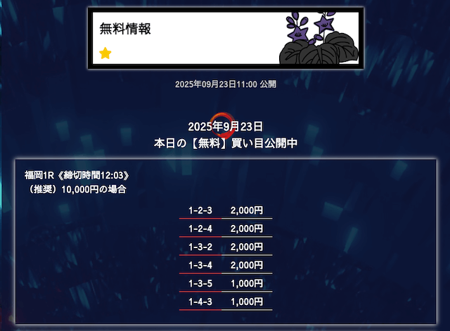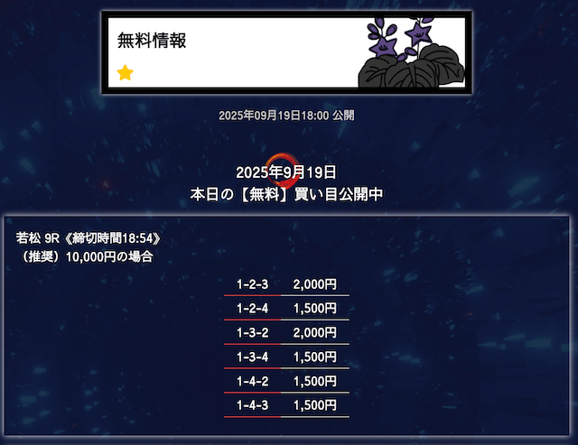 ということで、次は花舟の有料予想について特徴を見ていきましょう。