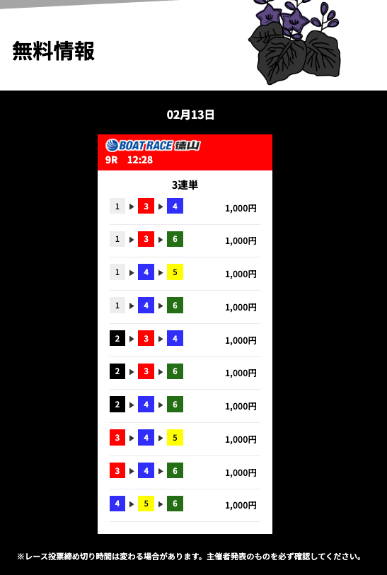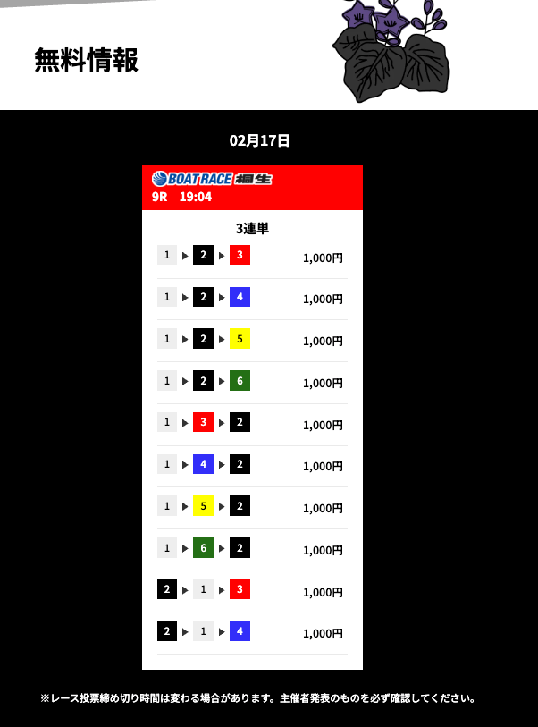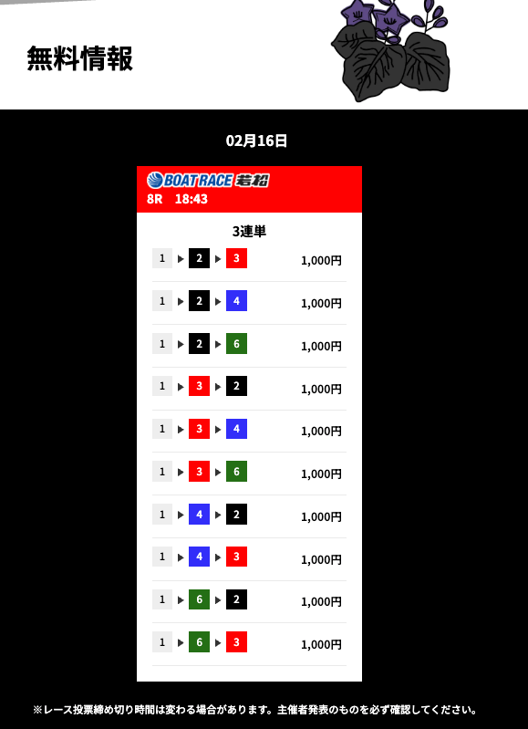花舟を無料予想のみで利用したい方は、是非参考にしてみてください。