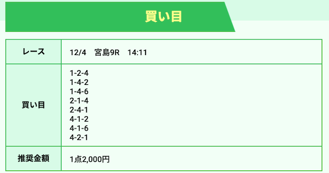 | 12月04日宮島09R | 2-1-4 | 16,000円 | 37,200円 | 233% | |