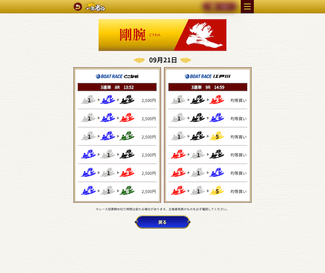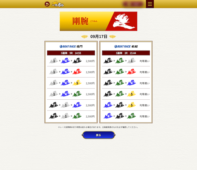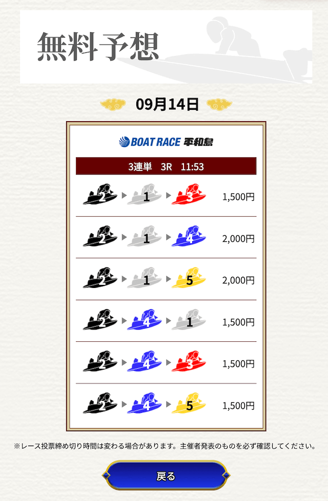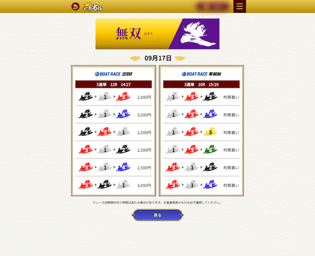 その上で一騎当船の予想が良いなと思ったら、お金を賭けて勝負してみてください。