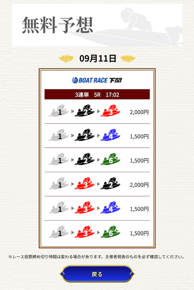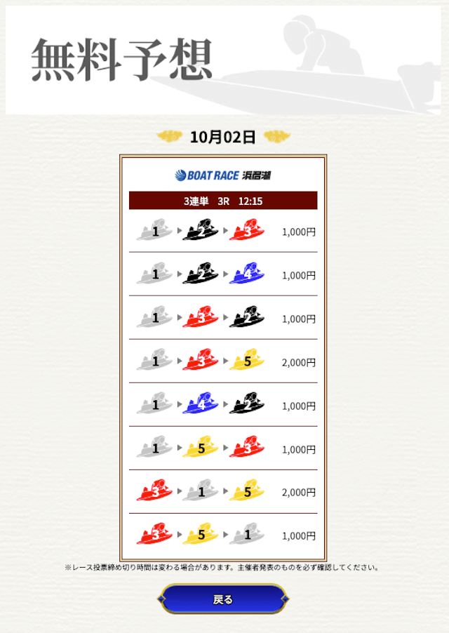なので、口コミ・評判は参考程度に留めて、まずは自分自身の目で一騎当船の無料予想を見てみるのがオススメ。(実際に賭けなくてOKです)