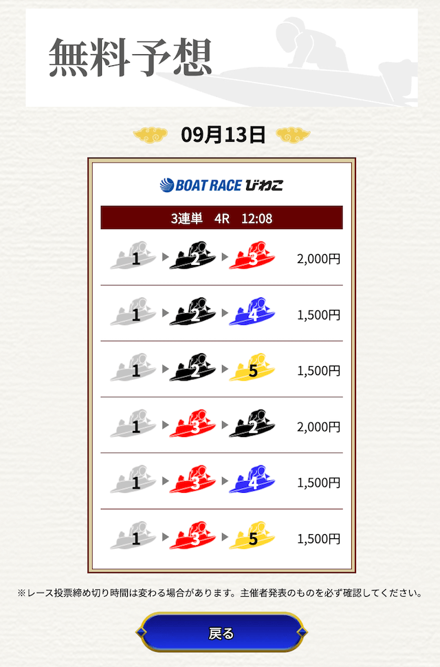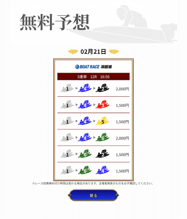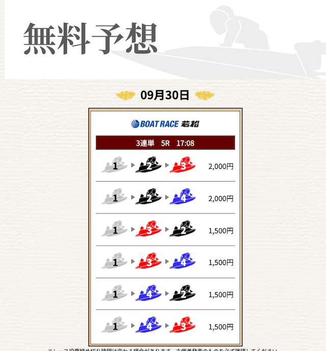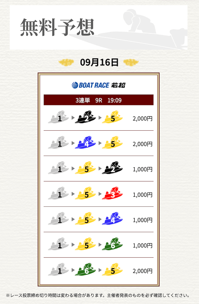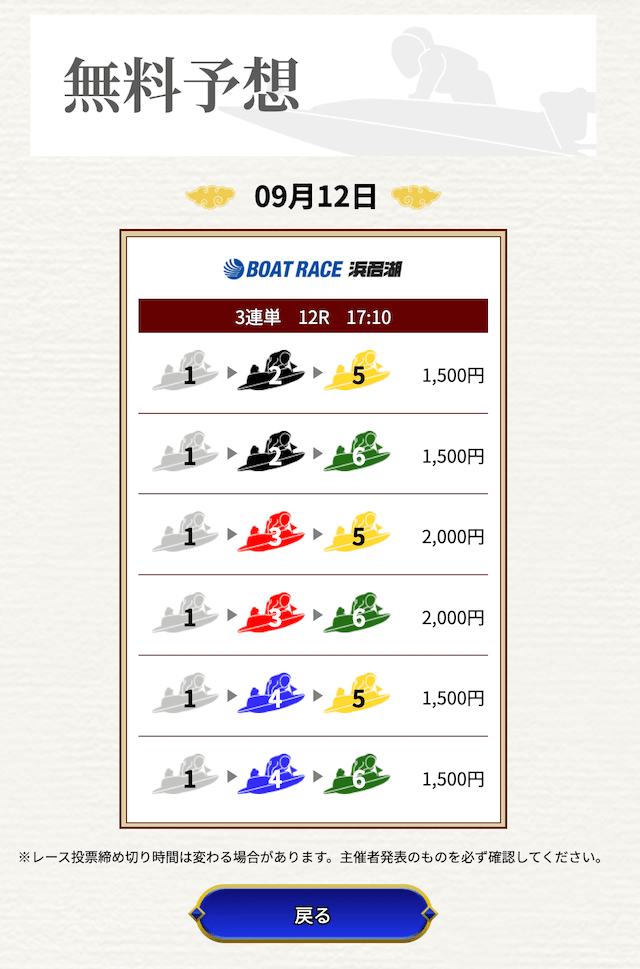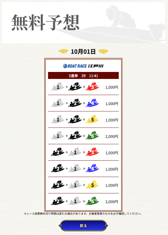 一騎当船の無料予想は事前参加など必要がなく、公開時間になったらすぐに閲覧することができます。