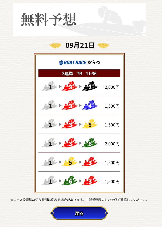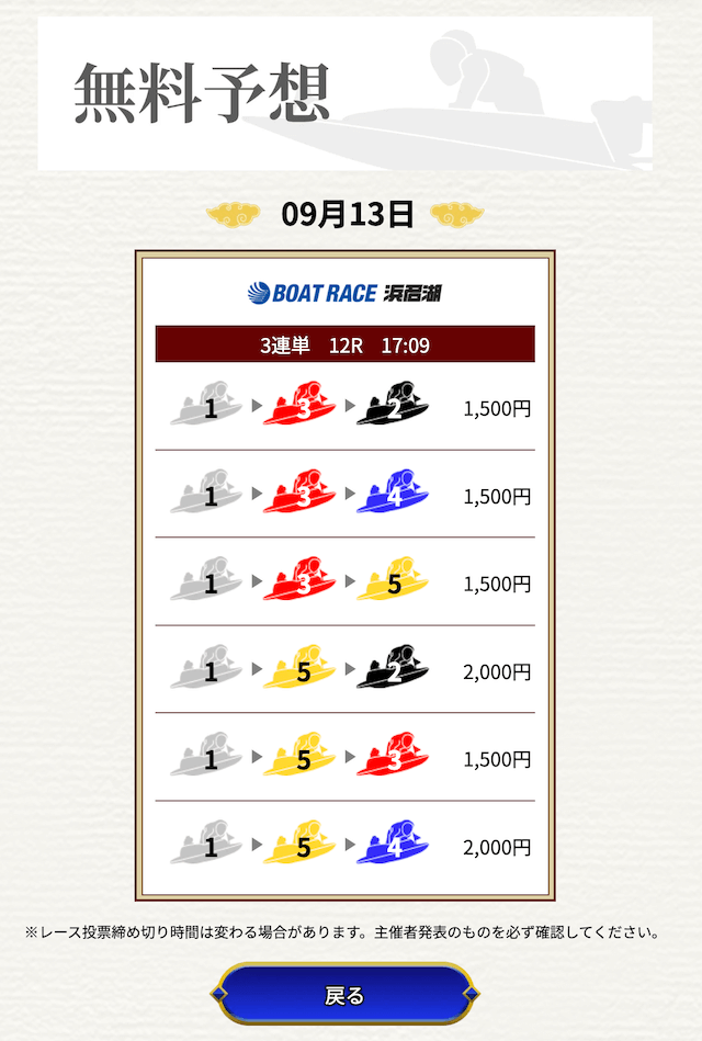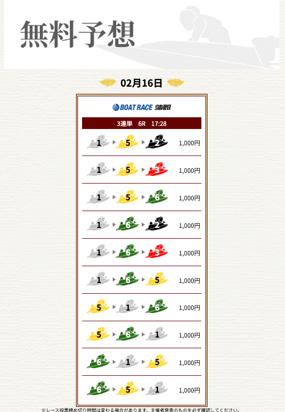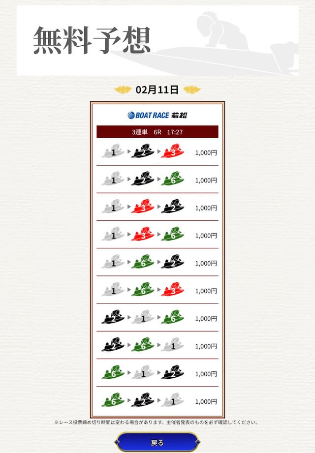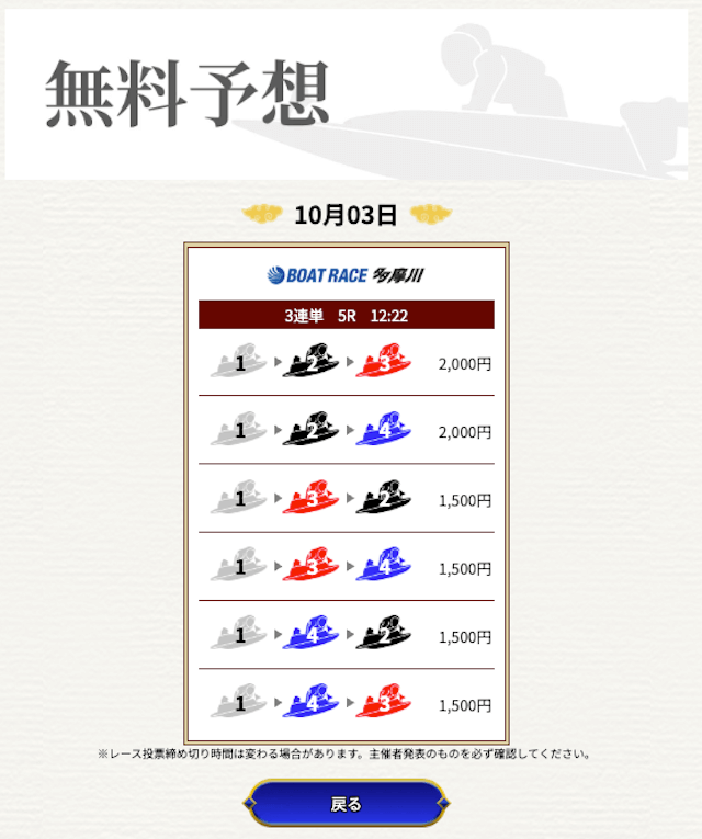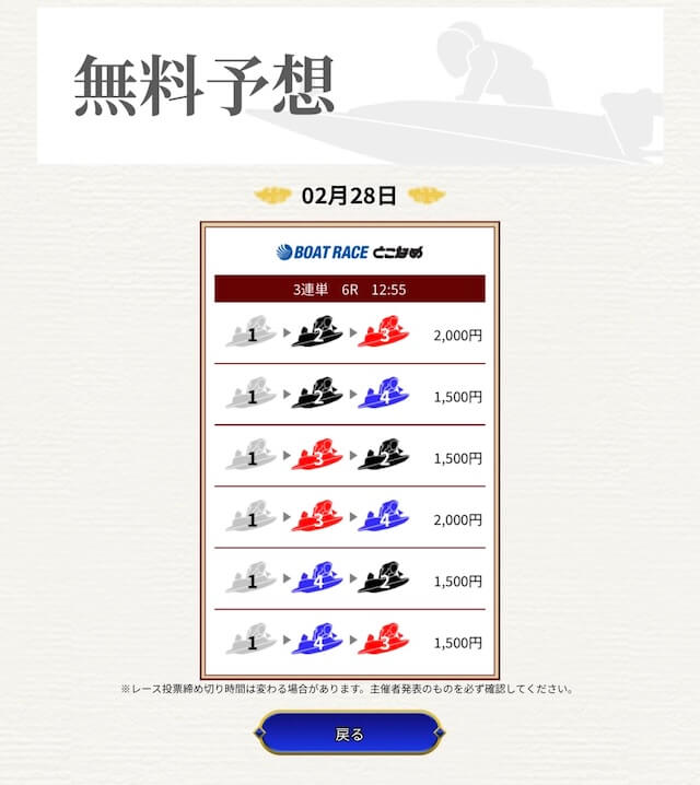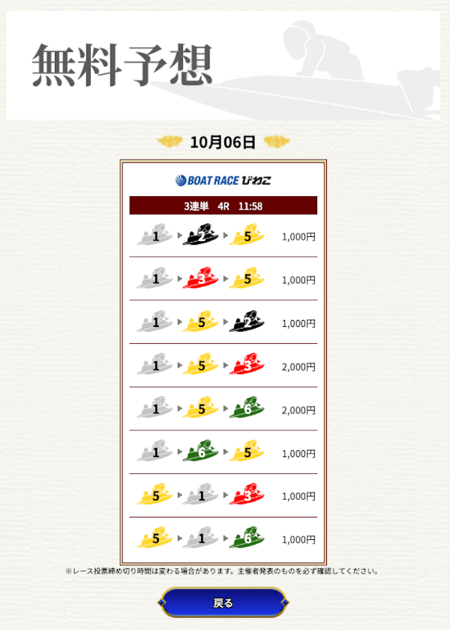 一騎当船の無料予想は事前参加など必要がなく、公開時間になったらすぐに閲覧することができます。