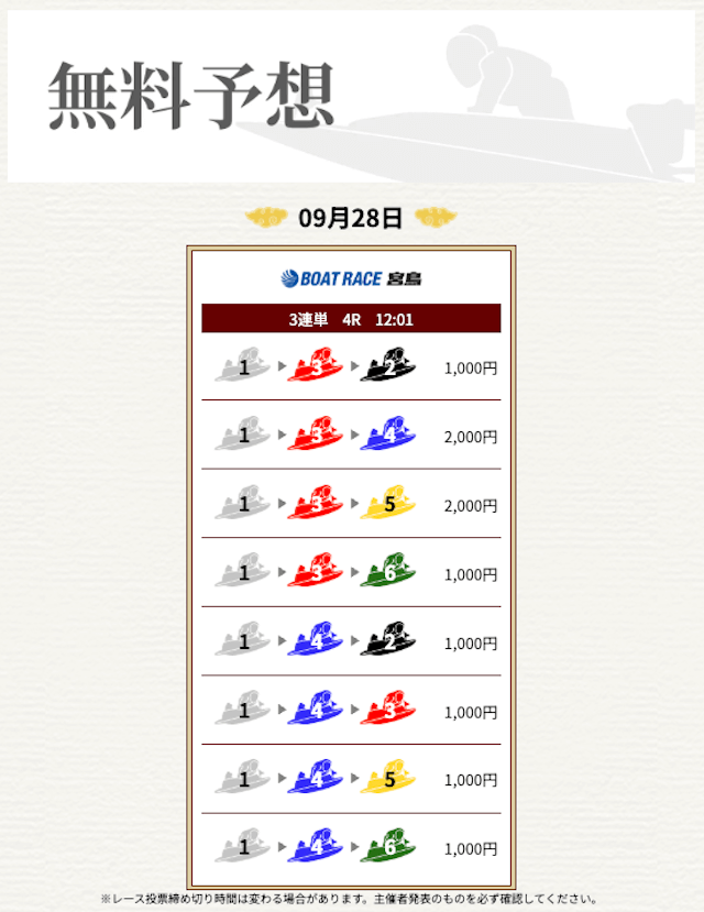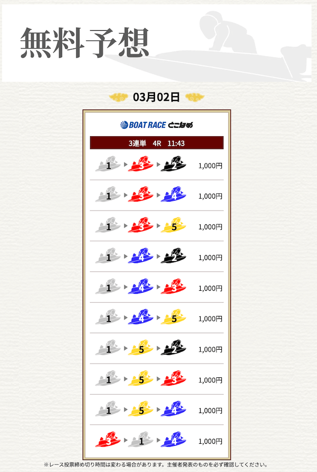 無料予想は買い目点数の幅が広く予想スタイルは不明